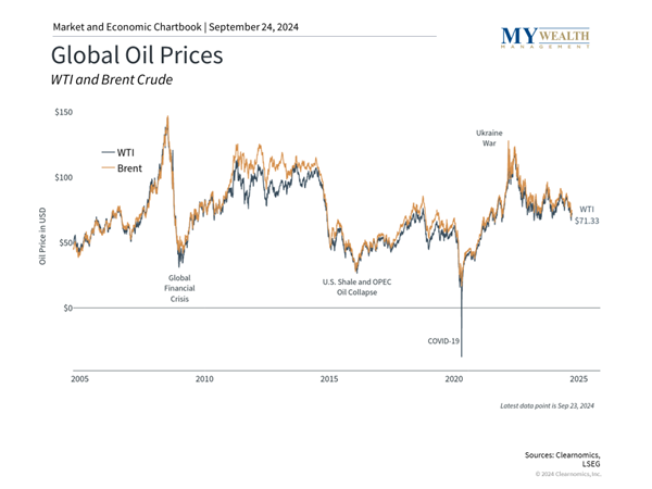 It’s also possible that the macroeconomic environment was far more sensitive to oil prices earlier this year when investors and the Fed were trying to determine the path of inflation. In that environment, month-to-month changes in oil prices could impact inflation figures, which in turn could affect the path of monetary policy. However, now that inflation has decelerated significantly and the Fed has begun to cut rates, markets may be less sensitive to short-term fluctuations in oil prices.